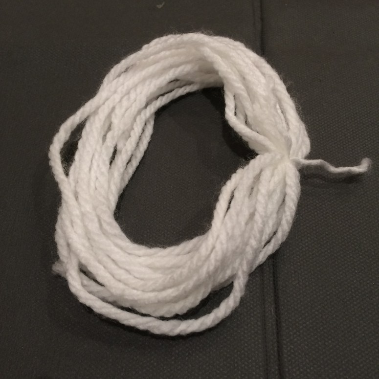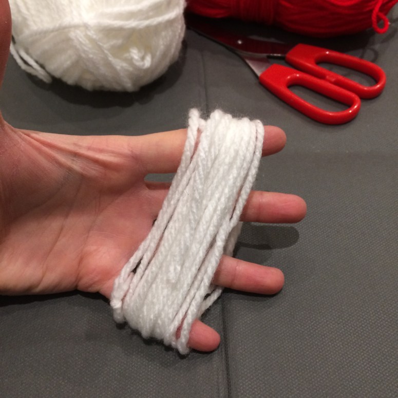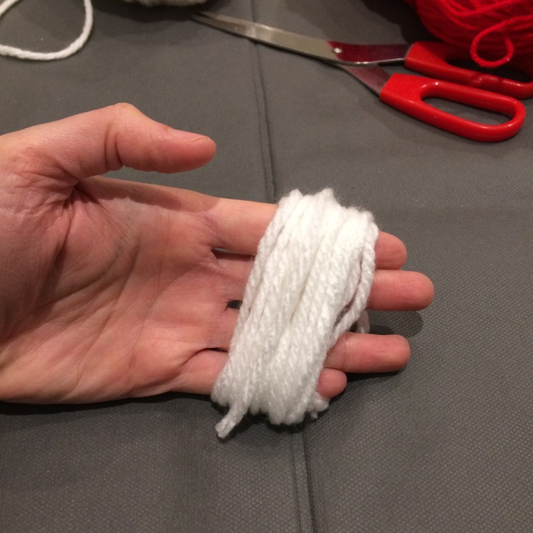 Sul palmo della mano ben aperto o su cartoncino fate più giri di lana bianca.